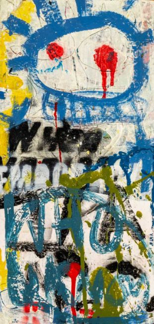 NEALE HOWELLS (b.1965) mixed media on wood panel - entitled, 'Red Eyes', signed and dated verso 2023, 38.5 x 19cmsProvenance: no ARR, direct from the artist's studio, South WalesComments: unframed wood panel