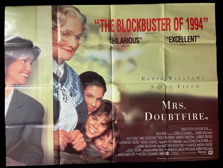 TEN 1990s COMEDY MOVIE POSTERS: The Beverly Hillbillies (1993), Joe Versus the Volcano (1990), Major League 2 (1994), Look Who's Talking Now (1993), Made in America (1993), Father of the Bride 2 (1995), Mrs Doubtfire (1993), Toys (1992), Richie Rich (1994) and Hook (1991), all ten are original UK cinema film posters, all folded, all standard UK quad size, 30 x 40 inchesProvenance: private collection CardiffComments: unrestored, folded with light line wear, some with pin holes, no rips or tears, all with titles written in pencil on reverse
