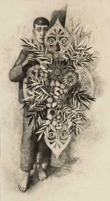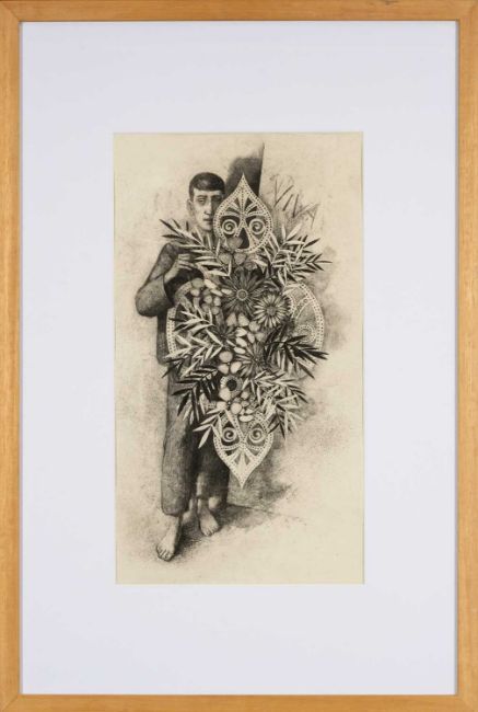 ‡ ATTRIBUTED TO JOHN VIVIAN ROBERTS (1923-2003) lithograph - Boy with Wreath, 40 x 22cmsProvenance: private collection CeredigionComments: framed, glazed
