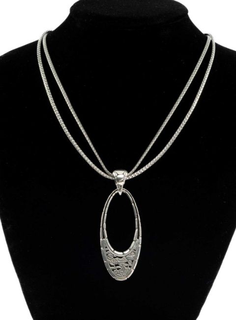 JOHN HARDY 'KALI' STERLING SILVER PENDANT NECKLACE, pendant 68mms drop, suspended from a double herringbone cord necklace united by a barrel clasp, 45cms (l), 33.8gProvenance: private collection Cheshire