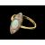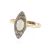 OPAL & DIAMOND CLUSTER RING in 18ct gold and platinum, the central cabochon opal flanked with six old round-cut diamonds in milgrain platinum mounts, marquise form, on an 18ct yellow gold ring, ring size S, 2.79gProvenance: private collection Cheshire