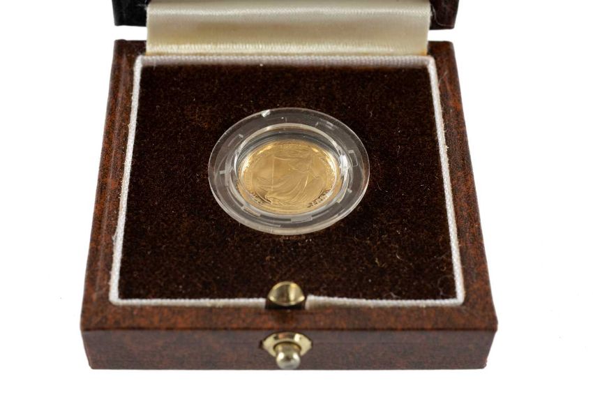 BOXED ROYAL MINT 1993 BRITANNIA 1/10OZ PROOF GOLD COIN, Limited Edition (402/1000) with Certificate of Authenticity, 3.4gProvenance: private collection CarmarthenshireComments: very good overall, in plastic capsule, viewing recommended