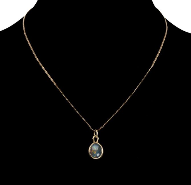 OPAL DOUBLET PENDANT NECKLACE in 9ct gold, 14mms drop, necklace 37cms (l), gross weight 2.6gProvenance: private collection Cheshire