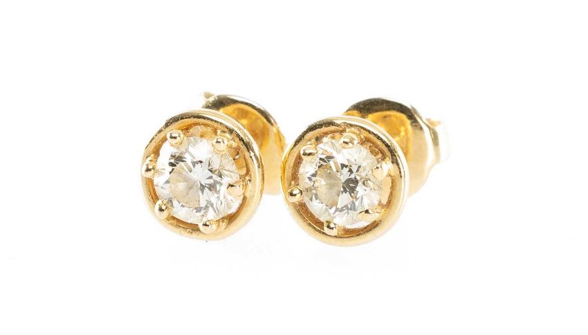 PAIR OF DIAMOND EAR STUDS, the brilliant-cut stones approx. 0.25cts, colour estimated as K/L, clarity SI, set within an unmarked yellow gold ring mount, with butterfly posts, gross weight 1.5gProvenance: private collection Cheshire