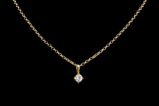 CUBIC ZIRCONIA PENDANT in unmarked yellow metal, suspended from a 9ct gold fine belcher chain necklace, 59cms (l), chain weight 7.1g (2)Provenance: private collection Cheshire